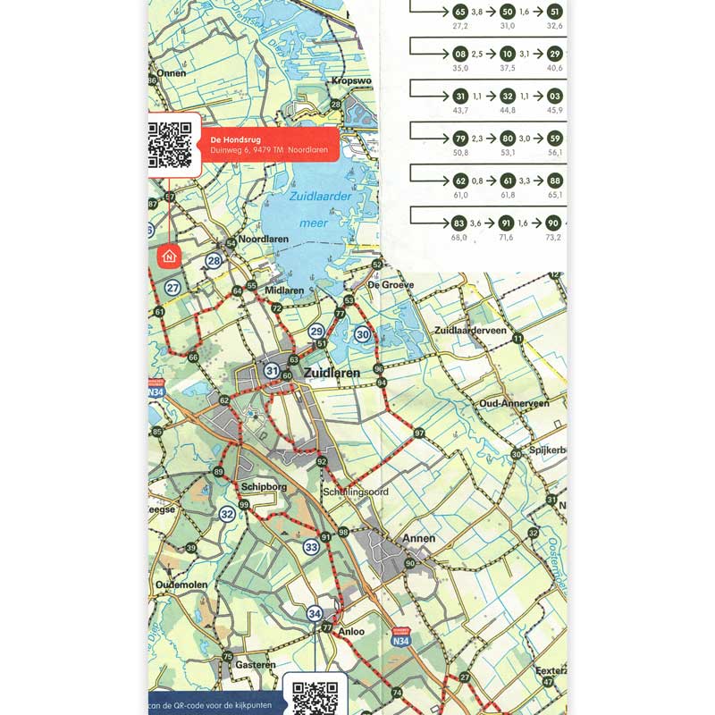 De route gaat door Drenthe’s Nationaal Parken, het UNESCO Global Geopark en UNESCO Werelderfgoed. Over paden en wegen, langs akkers en weide, door bossen en over heide. Over het zand en door het veen. Beleef het ijstijdenlandschap zoals dat 370.000 jaar geleden is ontstaan. Maak kennis met de prehistorie en recente geschiedenis en Drenthe’s rijke cultuur. Geniet van Drenthe!